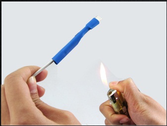 第三歩:熱縮套管套好之后,用打火機(jī)對熱縮管進(jìn)行加熱,或者使用高倍率熱風(fēng)槍對套管進(jìn)行均勻的加熱。