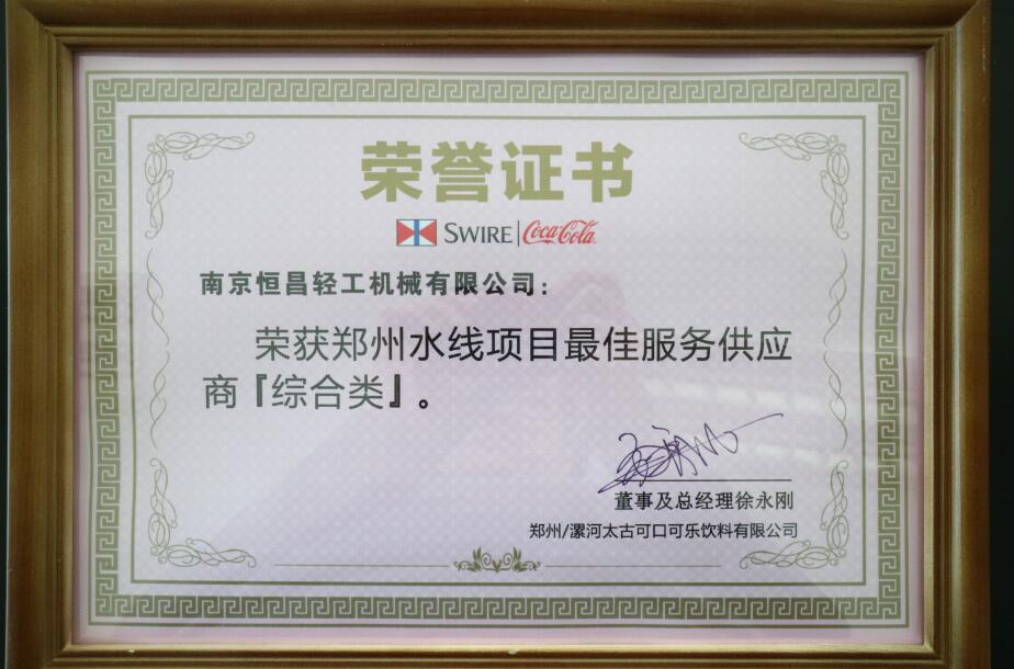 南京恒昌包裝作為后段整包商,在鄭州太古可口可樂(lè)48000bph水線(xiàn)項(xiàng)目中獲得“最佳服務(wù)供應(yīng)商”殊榮!