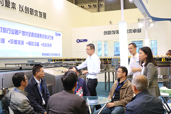 作為國內(nèi)集輸送系統(tǒng)設(shè)計(jì)、制造、調(diào)試安裝的高新技術(shù)企業(yè),南京恒昌此次展出了新一代六道高速分瓶器和動(dòng)態(tài)緩沖平臺(tái)等設(shè)備,吸引了眾多業(yè)內(nèi)知名人士和企業(yè)家前來參觀。整個(gè)恒昌展臺(tái)賓客絡(luò)繹不絕,人頭攢動(dòng),熱鬧非凡。