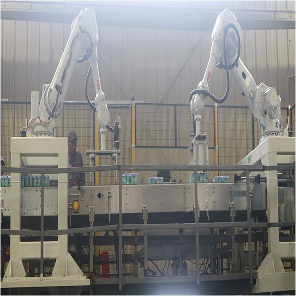 適用于方形磚包和玻璃瓶的緩沖輸送平臺,產(chǎn)能可達(dá)30000BPH.