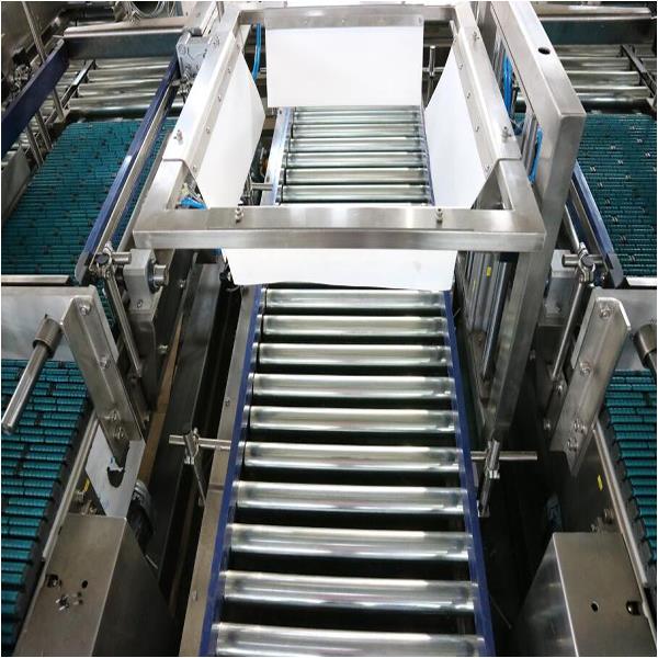 設(shè)備用于光明禮品的包裝線,將禮品包編組放置到大箱中。能夠同時(shí)支持兩臺(tái)禮品包包裝機(jī)。機(jī)械手完成裝盒動(dòng)作之后,可以根據(jù)禮品包的進(jìn)入通道,將大箱切換到相應(yīng)的輸送線上。