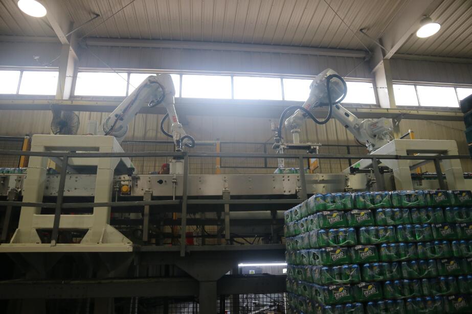 此設(shè)備是南京恒昌根據(jù)客戶的實(shí)際需求進(jìn)行定制的,滿足現(xiàn)有普罐9箱、10箱花型、SLEEK CAN、MINI SLEEK CAN13箱花型碼垛需求,并且具備未來(lái)2*6、3*4、3*5花型升級(jí)功能和生產(chǎn)能力,單臺(tái)能力達(dá)到60箱/分鐘。設(shè)備主體采用ABB智能機(jī)器手,通過(guò) SEW伺服電機(jī)帶動(dòng)雙向絲桿,來(lái)驅(qū)動(dòng)固定在2根進(jìn)口導(dǎo)軌上的夾板,對(duì)包型夾護(hù)后由機(jī)器人來(lái)進(jìn)行位移分道,轉(zhuǎn)向。設(shè)備運(yùn)行穩(wěn)定,高效,占用空間小,減少了對(duì)箱包的碰撞和磨損。